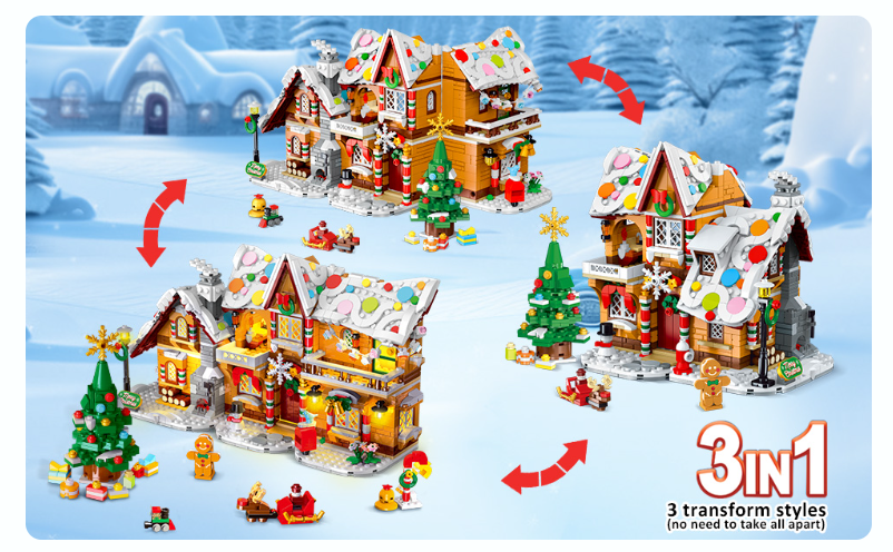3 in 1 Christmas Gingerbread House Building Set with LED Lights