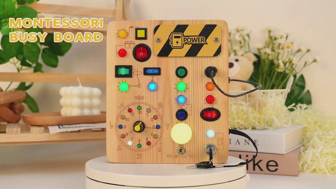 This wooden LED busy board is a fantastic toy for our toddler! The 11 switches and 22 LED lights provide endless entertainment and are great for developing fine motor skills.